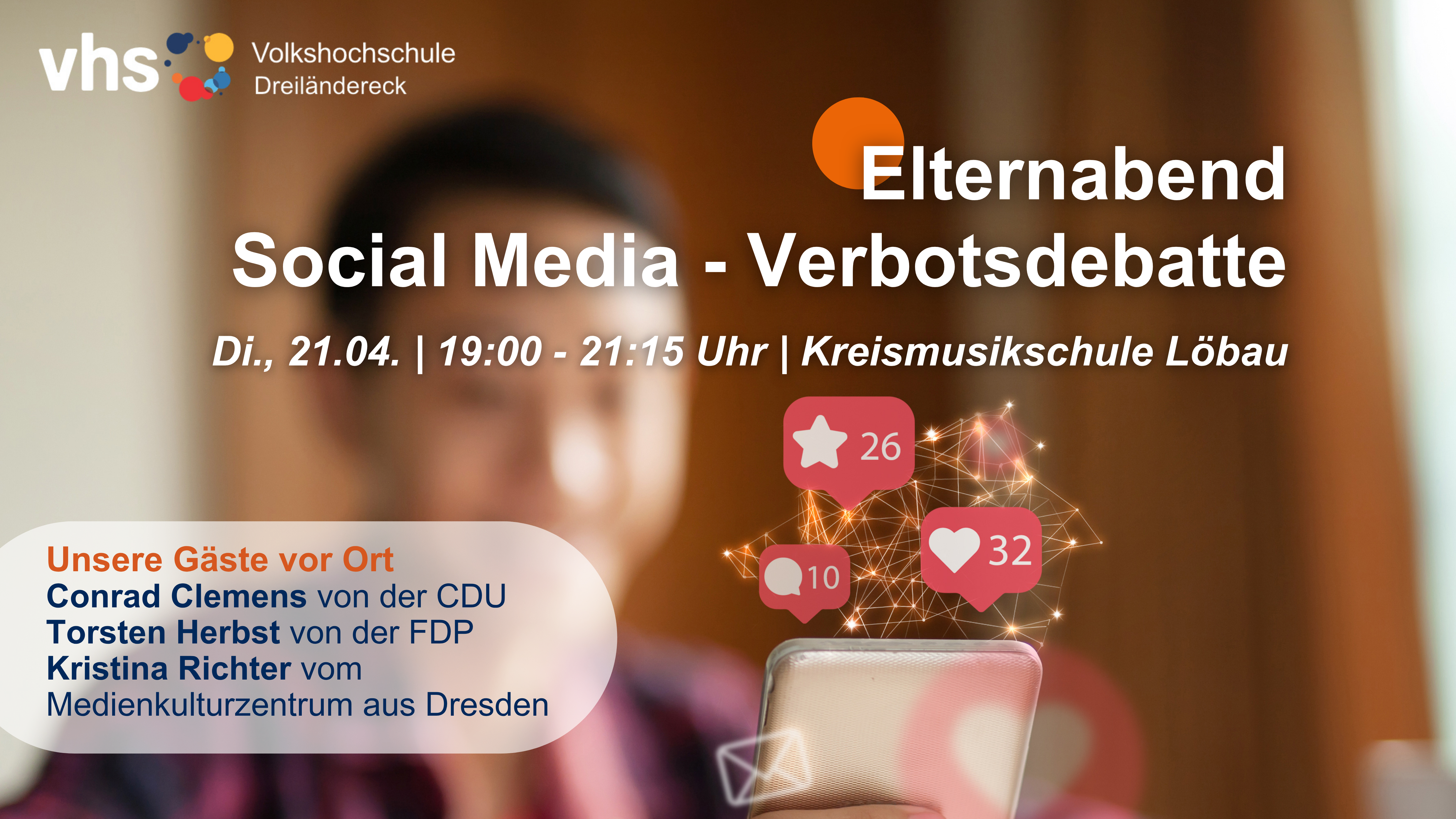 Beim Elternabend der VHS Dreiländereck stehen genau diese Fragen im Mittelpunkt. Conrad Clemens von der CDU, Torsten Herbst von der FDP sowie Kristina Richter vom Medienkulturzentrum aus Dresden bringen unterschiedliche Perspektiven aus Politik und Praxis ein und diskutieren Chancen, Risiken und Grenzen von Regulierung.