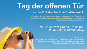Zum Semesterwechsel öffnen wir am 31. Januar 2026 von 10–18:30 Uhr die Türen der Volkshochschule Dreiländereck. Freuen Sie sich auf einen gemütlichen Tag mit Punsch, Kaffee und Kuchen – und die Möglichkeit, in unsere Kurse hereinzuschnuppern.